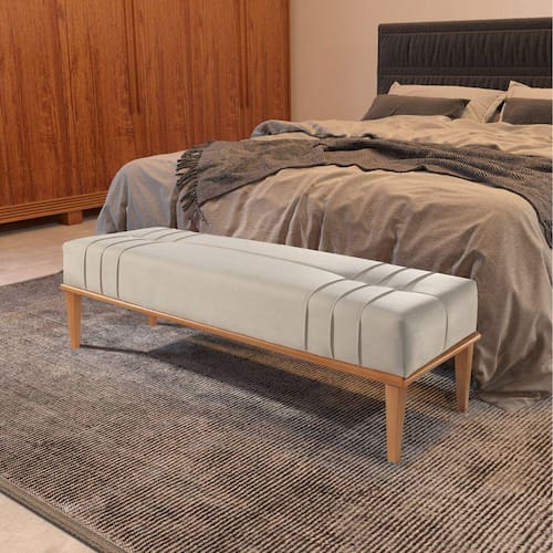 O formato retangular traduz ao móvel a sensação de aconchego, sendo ideal para utilizar em ambientes internos. Este item é capaz de proporcionar momentos descontraídos e de lazer, devido ao seu conforto. A peça tem como detalhe uma costura fina para destacar sua beleza. O recamier fica ótimo na sala de estar, quartos ou onde sua imaginação quiser.O recamier Valentin é feito em madeira eucalipto reflorestada. A base é feita em madeira Tauari (madeira maciça), com 40mm de espuma D28 soft de ótima qualidade, revestida com uma manta siliconada antialérgica. Acompanha Almofadas extras: Não Almofada do assento: Fixa Altura do assento até o chão: 45 Altura dos Pés: 15 Ambiente Principal: Sala de Estar Complexidade da Montagem: Baixa: pode ser montado por uma pessoa sozinha Cor: Bege Claro Cor do Produto: Bege Claro Densidade do Assento: D-28 Enchimento do Assento: Espuma Estilo de Braço: Sem Braços Firmeza do Assento: Médio Informações Complementares: As fotos podem sofrer alteração de cor conforme a calibragem da tela do celular ou computador. Itens Inclusos: 1 recamier Material da Estrutura: Madeira Eucalipto Material dos Pés: Eucalipto Modelo: Sofá Fixo Necessita Montagem: Sim Origem do Produto: Nacional Peso: 15 Pet Friendly: Não Possui Apoio para Braços: Não Possui Baú: Não Possui Encosto: Não Possui Percintas Elásticas: Sim Possui Pés: 04 Possui Rodízio: Não Quantidade de Lugares: 02 Recomendações de Uso, Manutenção e Limpeza: Umedeça um pano limpo e passe sobre a superfície e logo em seguida passando outro pano limpo e seco. Não molhar! Evitar exposição ao sol para que não sofra alterações na cor do tecido. Não utilizar escovas ou cedras duras. Sistema de Montagem: Parafusos Suporta Até (kg): 140 Tecido Predominante: Linho Tipo de Mola: Molas Bonnel Marca: Agarb Decor Ean: 7909903383582