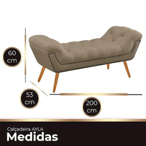 Introduza um toque de elegância ao seu quarto com o Recamier Estofado Ayla. Este móvel é mais do que estiloso e moderno; é a expressão máxima de sofisticação. Com detalhes em captones no assento e nas braças, além de acabamentos com botões na cor do móvel, esta recamier oferece uma decoração inigualável. As tachinhas de alumínio adicionam um charme extra, elevando ainda mais o ambiente. Além de funcional, o Recamier Ayla é uma verdadeira obra de arte, trazendo não apenas conforto, mas um toque de elegância incomparável ao seu espaço pessoal. Renove seu quarto com esta peça única.