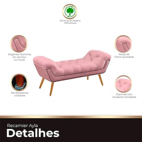 Introduza um toque de elegância ao seu quarto com o Recamier Estofado Ayla. Este móvel é mais do que estiloso e moderno; é a expressão máxima de sofisticação. Com detalhes em captones no assento e nas braças, além de acabamentos com botões na cor do móvel, esta recamier oferece uma decoração inigualável. As tachinhas de alumínio adicionam um charme extra, elevando ainda mais o ambiente. Além de funcional, o Recamier Ayla é uma verdadeira obra de arte, trazendo não apenas conforto, mas um toque de elegância incomparável ao seu espaço pessoal. Renove seu quarto com esta peça única.
