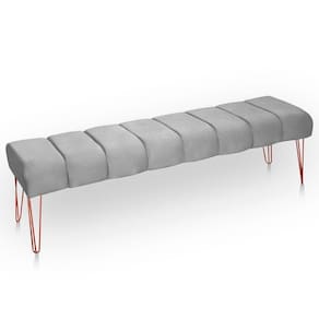 Recamier Estofada Casal King Size Luxo Veludo Cor Cinza Claro