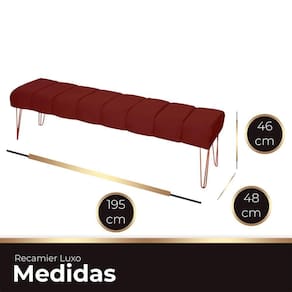 Transforme seu espaço em um oásis de elegância com a Recamier Luxo Casal King Size . Esta peça estilosa e moderna é a definição de sofisticação, com detalhes em formatos verticais no assento que a tornam única. Seus pés de alumínio na cor cobre proporcionam uma decoração inigualável, elevando o ambiente a um nível de requinte incomparável. Leve para casa essa beleza e adicione um toque de luxo ao seu lar hoje mesmo.