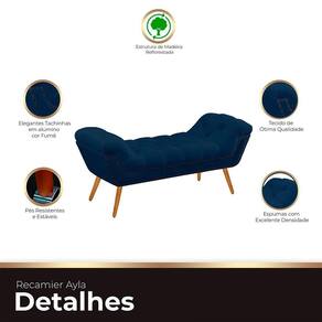 Recamier Estofada Casal Queen Ayla Veludo Cor Azul Marinho