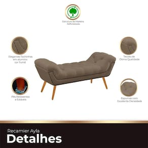 Introduza um toque de elegância ao seu quarto com o Recamier Estofado Ayla. Este móvel é mais do que estiloso e moderno; é a expressão máxima de sofisticação. Com detalhes em captones no assento e nas braças, além de acabamentos com botões na cor do móvel, esta recamier oferece uma decoração inigualável. As tachinhas de alumínio adicionam um charme extra, elevando ainda mais o ambiente. Além de funcional, o Recamier Ayla é uma verdadeira obra de arte, trazendo não apenas conforto, mas um toque de elegância incomparável ao seu espaço pessoal. Renove seu quarto com esta peça única.
