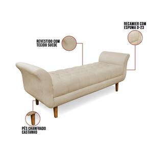 Recamier Olinda Suede 160 Cm Pés Chanfrado Castanhos - D`rossi Cor Bege