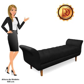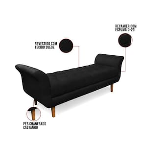 Recamier Olinda Suede 160 Cm Pés Chanfrado Castanhos - D`rossi Cor Preto
