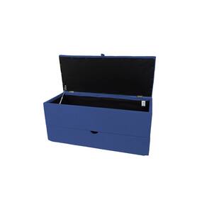 Recamier Puff Baú Sapateira E Gaveta 90 Cm Para Cama De Solteiro- Azul Royal