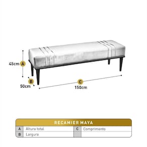 Informações Complementares: O Recamier Maya Luxo destaca-se pelo design minimalista e elegante, com linhas retas e detalhes sutis que conferem sofisticação. Sua estrutura em madeira maciça e o estofado em espuma D26 SOFT garantem durabilidade e conforto excepcionais.