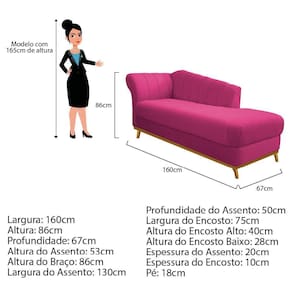 Com uma estrutura e beleza única, o Recamier Vanessa se adapta em qualquer ambiente, tornando-o ainda mais elegante e harmonioso. Um Recamier luxuoso de alta qualidade, dará um toque especial em seu ambiente. Não perca essa oportunidade de levar mais charme e requinte ao seu cômodo, adquira já o seu! Especificações Técnicas do Recamier Vanessa: - Altura: 86 cm; - Largura: 160 cm; - Profundidade: 67 cm; - Altura do Assento: 53 cm; - Altura do Braço: 86 cm; - Largura do Assento: 130 cm; - Profundidade do Assento: 50 cm; - Largura do Encosto: 75 cm; - Altura do Encosto Alto: 40 cm; - Altura do Encosto Baixo: 28 cm; - Espessura do Assento: 20 cm; - Espessura do Encosto: 10 cm; - Altura dos Pés: 18 cm; - Peso: 35 kg. - Peso Suportado: 220 kg. Diferenciais do Recamier Vanessa: - Material da Estrutura: fabricado com Madeira Pinus e Eucalipto Reflorestada, e alguns detalhes em MDF; - Tipo de Assento: estofado e com espuma de densidade D-26; - Tipo de Encosto: estofado e com espuma de densidade D-18; - Detalhes do pé: 1 Kit (04 pés) de madeira, com alta resistência; - Volumes: nessa compra você receberá um único produto. Recomendações de limpeza: -Limpar com flanela limpa e seca. Não molhar o móvel e não expor em lugar úmido ou próximo de fontes de calor. Não usar produtos abrasivos.