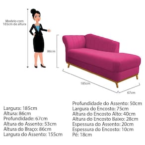 Com uma estrutura e beleza única, o Recamier Vanessa se adapta em qualquer ambiente, tornando-o ainda mais elegante e harmonioso. Um Recamier luxuoso de alta qualidade, dará um toque especial em seu ambiente. Não perca essa oportunidade de levar mais charme e requinte ao seu cômodo, adquira já o seu! Especificações Técnicas do Recamier Vanessa: - Altura: 86 cm; - Largura: 185 cm; - Profundidade: 67 cm; - Altura do Assento: 53 cm; - Altura do Braço: 86 cm; - Largura do Assento: 155 cm; - Profundidade do Assento: 50 cm; - Largura do Encosto: 75 cm; - Altura do Encosto Alto: 40 cm; - Altura do Encosto Baixo: 28 cm; - Espessura do Assento: 20 cm; - Espessura do Encosto: 10 cm; - Altura dos Pés: 18 cm; - Peso: 35 kg. - Peso Suportado: 220 kg. Diferenciais do Recamier Vanessa: - Material da Estrutura: fabricado com Madeira Pinus e Eucalipto Reflorestada, e alguns detalhes em MDF; - Tipo de Assento: estofado e com espuma de densidade D-26; - Tipo de Encosto: estofado e com espuma de densidade D-18; - Detalhes do pé: 1 Kit (04 pés) de madeira, com alta resistência; - Volumes: nessa compra você receberá um único produto. Recomendações de limpeza: -Limpar com flanela limpa e seca. Não molhar o móvel e não expor em lugar úmido ou próximo de fontes de calor. Não usar produtos abrasivos.