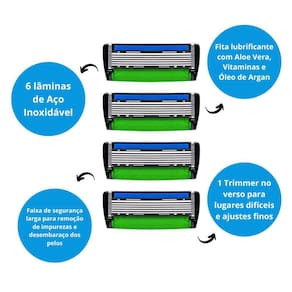 6 lâminas de Aço Inoxidável: Extremamente duráveis, mantêm o corte por mais tempo.