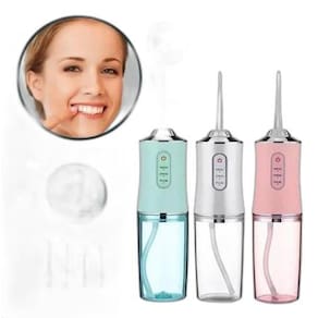 Recarregável e Poderoso: Irrigador Oral Bucal 3 Jatos Portátil Recarregável USB 220ml O Irrigador Dental de Jato D'Água Portátil foi desenvolvido para higienizar locais que a escova e o fio dental não alcançam. Recomendado principalmente para quem usa , implantes, coroas, próteses e outras necessidades específicas e não consegue tirar melhor proveito do fio dental. Além disso, é capaz de remover restos de alimentos entre os dentes, o que ajuda a evitar placa bacteriana e possíveis cáries. Inibi o tom amarelado dos dentes e estimula a corrente sanguínea na gengiva, mantendo-a saudável. Experimente todos os benefícios que esse produto oferece Cuide do seu sorriso Com os seus 4 bicos você poderá realizar uma limpeza completa dos seus dentes, as gengivas, a língua e as partes moles da boca. Isso permitirá que você remova a placa e as bactérias, reduza a halitose e fortaleça suas gengivas. Simples de usar Seu design leve e portátil lhe dá a praticidade que você precisa para uma limpeza fácil e eficaz. Sua higiene dental perfeita a qualquer hora, em qualquer lugar ESPECIFICAÇÕES: - Dentes saudáveis e hálito fresco; - Limpeza profunda, prática e indolor; - Três vezes mais efetivo que o uso do fio dental. -bivolt ITENS INCLUSOS: - Irrigador oral; - 4 bicos diferentes para limpeza mais eficiente; - Cabo USB para carregar. Cores conforme disponibilidade em