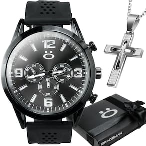 Conteúdo do Kit: - 1 Relógio Masculino Analógico Orizom Spaceman - 1 Corrente em Aço Inoxidável de 60cm - 1 Pingente Cruz com Gravação a Laser da Oração do Pai Nosso - 1 Caixa Ultra Premium Orizom Spaceman para Acomodar o Relógio e a Corrente