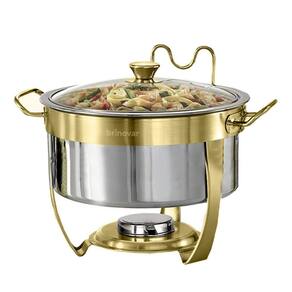 O Rechaud Gold Redondo 8 Litros Brinovar tem a estrutura e o fogareiro em Aço Inox: altamente durável, resistente e fácil de limpar. Possui a tampa em vidro temperado, com saída de vapor. Vem com um prático apoio para tampa. A da cuba é muito simples, podendo ser realizada durante o uso do produto, sem prejudicar o serviço Detalhes Dourado, sem dúvida, o mais bonito da categoria para estilizar seu ambiente Medidas da Cuba de Comida: 28cm de Diâmetro por 14cm de Altura 8 Litros Medidas da Cuba de Água: 29,5cm de Diâmetro por 16cm de Altura Medidas do Rechaud Montado: 39cm de Largura por 35cm de Altura Capacidade: 8 Litros. Marca: Brinovar Itens Inclusos: 01 Rechaud 01 Cuba para Comida 01 Cuba para Água 01 Tampa de Vidro com Respiro 01 Fogareiro 01 Suporte Traseiro para Tampa Marca: Não Informado