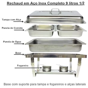 Rechaud Retangular Inox 9 Litros Panelas Banho Maria 2 Cubas Buffet 1/2 Tampa Removível