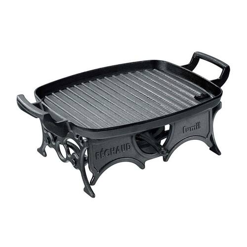 O Réchaud Mil Grill Alça de Espiral da Panela Mineira possui um design autêntico, com a base estriada e canaletas nas bordas que permitem o escoamento da gordura da peça que está sendo cozida. Ideal para preparar fritar, selar e grelhar carnes, legumes, peixes e outros alimentos, de maneira prática e eficiente. Sua excelente distribuição e retenção de calor, característico do ferro fundido, mantém os alimentos aquecidos por muito mais tempo, além de enaltecer seus sabores e aromas. Possui um berço modelo tradicional (estrutura que apoia a assadeira), que acompanha um fogareiro, composto de base, espiriteira (recipiente onde coloca-se álcool), regulador de chama, suporte e grelha. O fogareiro deve ser aceso com o álcool em gel 70% ou 90%. Sua capacidade é de aproximadamente 300ml, o suficiente para manter a chama acesa por cerca de 1h30.