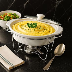 Rechaud Oval em Cerâmica com Queimador 1,5L - Elegância e Praticidade à Mesa O Rechaud Oval em cerâmica é a escolha perfeita para quem deseja manter os alimentos aquecidos durante toda a refeição, unindo funcionalidade e sofisticação na apresentação. Com capacidade de 1,5 litro, é ideal para servir massas, sopas, risotos e outros pratos que merecem ser mantidos na temperatura ideal. A travessa de cerâmica branca possui alta resistência térmica, podendo ser utilizada para gratinar ou aquecer os alimentos antes de servir. Seu suporte metálico robusto oferece estabilidade, enquanto o queimador com regulagem de chama proporciona aquecimento contínuo, sem comprometer a segurança. A tampa de vidro temperado com pegador facilita o monitoramento do alimento, mantendo o calor sem a necessidade de remoção constante. Especificações: Capacidade: 1,5 litros Dimensões: 35 cm largura x 21,5 cm profundidade x 21,5 cm altura Material da travessa: Cerâmica branca de alta resistência Material do suporte: Aço com acabamento cromado Tampa: Vidro temperado com puxador central Queimador: Reservatório para álcool com ajuste de chama Peso aproximado: 2,1 kg Diferenciais: Design sofisticado e atemporal Mantém os alimentos aquecidos com eficiência Ideal para jantares, buffets e ocasiões especiais Fácil de limpar e manusear Estrutura desmontável para melhor armazenamento Marca: Não Informado Ean: 7901041402996