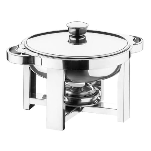 Rechaud Redondo Aço Inox 1,5L com Tampa e Queimador Buffet Restaurante Hotel Zanella.