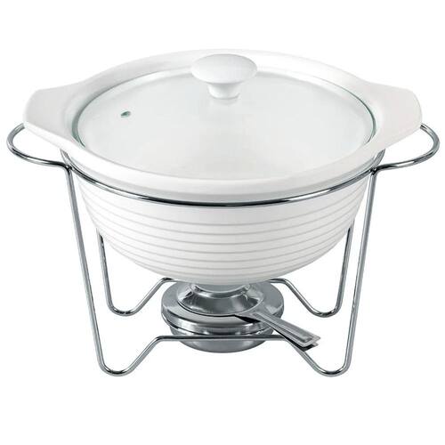 Rechaud Redondo em Cerâmica com Queimador 2,3L Elegância Funcional para Servir com Estilo O Rechaud Redondoé a união perfeita entre design sofisticado e praticidade na hora de servir. Com capacidade generosa de 2,3 litros, é ideal para manter pratos quentes como risotos, massas, sopas ou carnes sempre na temperatura ideal durante suas refeições ou eventos. A travessa em cerâmica branca de alta resistência proporciona excelente conservação térmica e um visual clean que valoriza qualquer composição de mesa. A estrutura metálica com acabamento cromado confere estabilidade e durabilidade, enquanto o queimador integrado garante o aquecimento contínuo com segurança. A tampa em vidro temperado com puxador facilita a visualização do alimento sem necessidade de abertura, ajudando a preservar o calor e a umidade dos pratos servidos. Especificações Técnicas: Capacidade: 2,3 litros Dimensões: 33 cm largura x 25,5 cm profundidade x 25 cm altura Material da travessa: Cerâmica branca Material da tampa: Vidro temperado com pegador central Suporte: Aço cromado Queimador: Reservatório com regulagem de chama Peso aproximado: 2,7 kg Diferenciais: Formato redondo que facilita o serviço e o manuseio Design elegante e versátil para uso doméstico ou Ideal para buffets, jantares ou ocasiões especiais Componentes removíveis para facilitar a limpeza e o armazenamento Marca Full Fit - referência em qualidade e acabamento