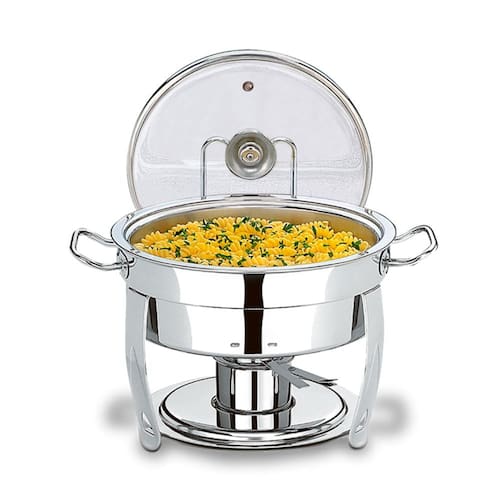 Marca: Brinox Modelo: Savoy 31 x 43 cm Características O Rechaud Redondo 5 Litros Savoy tem a estrutura e o fogareiro em Aço Inox: altamente durável, resistente e fácil de limpar. Possui a tampa em vidro temperado, com saída de vapor. Vem com um prático apoio para tampa. A da cuba é muito simples, podendo ser realizada durante o uso do produto, sem prejudicar o serviço! INFORMAÇÕES: AMBIENTE: Corporativo MATERIAL: Aço Inox LINHA: Savoy TIPO DE PRODUTO: Servir corporate COMPOSIÇÃO: 01 Estrutura Inox 01 Tampa Vidro Temperado Ø 30 cm 01 Apoio para Tampa 01 Fogareiro Aço Inox 01 Cuba 5L 01 Cuba para Banho Maria : 6 Meses Ean: 7896502812264