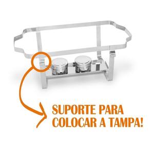 Com diversas vantagens, o rechaud possui suporte dobrável, o que ocupa menos espaço para transporte de um evento para outro, conta também com alças laterais para facilitar o manuseio, a tampa removível conta com uma escora embutida no suporte para não atrapalhar na hora de servir.