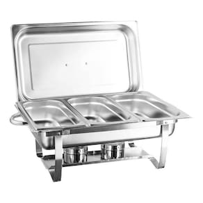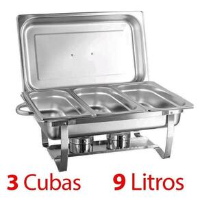 Dimensões do Rechaud C x L x A : 63,5 x 36 x 31 cm Capacidade: 9,5 Litros de banho-maria Capacidade das 3 cubas de alimentos: 9 litros total