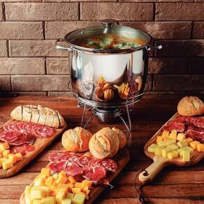 - Além de funcionar como rechaud, pode-se utilizar como panela, bastando apenas retirá-la do suporte.