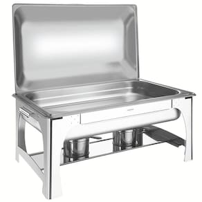 RECHAUD TRAMONTINA RETANGULAR EM AÇO INOX BANHO MARIA TAMPA REMOVÍVEL COM FOGAREIRO CUBA GN 1/1 9 L