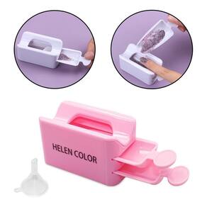 Contém: 1 - recipiente coletor suporte rosa para glitter unhas com pá removível e funil, helen color