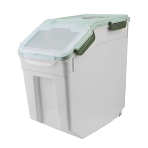 Este recipiente de armazenamento de ração para animais de estimação é feito de PP de grau alimentício, proporcionando um ambiente de armazenamento saudável. Os grandes recipientes de farinha de plástico são perfeitos para armazenar sua farinha, açúcar, arroz, grãos, nozes, feijão, lanches, passado. café, chá, ração para animais de estimação ou qualquer coisa que você queira armazenar. Recipientes herméticos, à prova de vazamentos e duráveis. Uma vedação de silicone aprimorada mantém os alimentos frescos por mais tempo. O design da capa transparente torna toda a caixa de armazenamento mais bonita e elegante. Com design de janela visível, você pode ver o interior claramente num relance, para não precisar abrir a caixa. Especificações: Material: PP de grau alimentício, silicone Cor: verde Capacidade: pode conter cerca de 13 kg de farinha e cerca de 9 kg de comida de cachorro por recipiente. (a capacidade específica depende da forma da ração para animais de estimação). Dimensões (aprox. ): 32 x 23 x 36 cm (C x L x A) Incluído na embalagem: 1 recipiente de armazenamento de ração para cães. 1 colher de comida de plástico (entrega de ). 1 copo medidor. - ?Recipiente de armazenamento multifuncional?O recipiente de armazenamento de farinha é uma ótima maneira de armazenar qualquer tipo de alimento e mantê-lo seguro e seco pelo tempo que você precisar. O recipiente hermético para alimentos é ótimo para armazenar farinha, grãos, cereais, açúcar, arroz, nozes, feijão, lanche, café, chá, pão, milho, macarrão, ervas, ração para animais de estimação, soja, produtos secos, etc. - ?Material de qualidade alimentar e durável? O recipiente de armazenamento de arroz é feito de plástico PP livre de BPA e silicone ecológico, não tóxico e seguro. Tamanho (aprox. ): 32 x 23 x 36 cm (C x L x A). Capacidade: pode suportar cerca de 11 kg de farinha/arroz e cerca de 9 kg de ração para animais de estimação por recipiente. Dica: a capacidade varia dependendo do tamanho do que você está colocando, a capacidade do produto é apenas para referência. - Recipiente hermético para alimentos: capa hermética de silicone selada com tampa flip e fechos de trava, mantendo seus alimentos limpos e secos. Garante que seus ingredientes permaneçam sempre frescos. - ?Fácil de usar?A frente do recipiente de armazenamento de comida de cachorro de plástico tem uma ranhura e uma grande abertura inclinada, o que o torna muito fácil de retirar e encher. Com tampas transparentes, resume-se a quantidade restante do barril. Há 2 rodas pequenas na parte de trás, você só precisa levantar a frente para puxá-la facilmente. - ?Fácil de limpar?As tampas do recipiente de armazenamento de ração para animais de estimação são removíveis, fáceis de limpar. Este recipiente para comida de cachorro pode ser colocado na prateleira, despensa, bancada, mesa ou armário, mantenha limpo e arrumado.