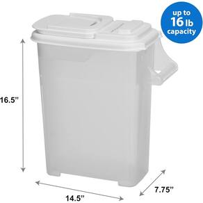 Recipiente de armazenamento de alimentos para animais de estimação Buddeez - Recipiente de armazenamento de alimentos para cães com capacidade de 16 libras, recipiente para comida para gatos, recipiente para armazenamento de sementes de pássaros com alça durável EZ e tampa giratória EZ com bico de vazamento (tampa branca)