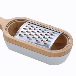 O ralador de queijo feito em bambu e aço inoxidável é uma ferramenta essencial para os amantes do queijo que buscam comodidade e praticidade na cozinha. Com medidas de 27x7x5 cm, este ralador oferece eficiência em um design compacto. Fabricado com materiais duráveis, como bambu e aço inoxidável, garante resistência e qualidade em seu uso diário. A incorporação de um coletor de queijo é um recurso funcional que melhora a experiência para evitar desordem na mesa ou nos móveis. Além disso, su color café agrega un toque l y cálido a la cocina, convirtiéndolo en un accesorio tanto práctico quanto esteticamente agradable.Material: Bambu y acero inoxidable Cor: CaféMedidas:5 cm x 7 cm x 27 cm