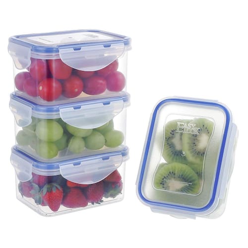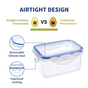 - Sistema de bloqueio prático: o sistema de bloqueio de 4 lados à prova de vazamento e a tampa de vedação de silicone melhoram a vedação dos recipientes, evitando o vazamento de alimentos e mantendo o frescor dos alimentos ao mesmo tempo. Oferece o máximo de frescor e armazenamento prolongado de alimentos. E recipientes transparentes tornam conveniente ver o que está dentro