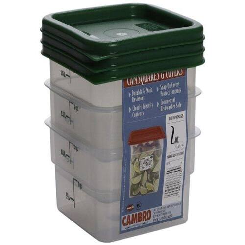 Cambro Conjunto de 3 recipientes quadrados de armazenamento de alimentos com tampas, 2 litros