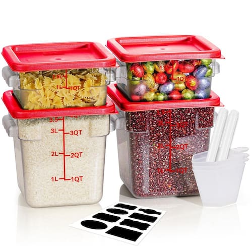 - ?Conjunto de recipientes de armazenamento de alimentos?: SVKLHY embalagem transparente inclui recipientes quadrados de armazenamento de alimentos de 4 x 2 litros e 4 litros com tampas vermelhas, 8 x etiquetas livres, 1 marcador e 2 copos medidores. Acessórios adicionais atendem melhor a uma variedade de necessidades e cenários de uso, melhorando a experiência geral do usuário.