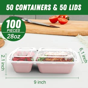 - ?Pacote econômico com 50?: Este pacote inclui 50 pacotes (100 peças) recipientes de preparação de refeições de 800 ml com tampas e 2 compartimentos. Eles são a escolha perfeita para sua preparação diária de refeições.