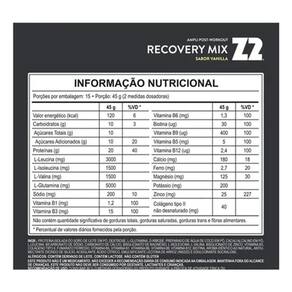 Recovery Mix Z2 Pós treino 675g Sabor Vanilla Sabor: Vanilla O Z2 Recovery Mix é o produto ideal para o seu pós-treino. A ideia não é substituir uma de suas refeições, mas fornecer em um só produto tudo o que precisa para uma recuperação e manutenção da sua saúde. Potencializar os efeitos do treino e otimizar a recuperação são estratégias fundamentais. Além de 20g de Whey Protein Isolado por porção, temos 10g de carboidratos de alta qualidade, 6g de BCAA com 3g de leucina, 5g de glutamina, 40mg de colágeno tipo II, além de vitaminas e minerais. Ou seja, o seu pós-treino e pós-prova ideal para seguir com saúde e performance. Modo de Consumo Consumir imediatamente após o treino. Dilua 45 g 2 medidas dosadoras , em 350 ml de água na sua shakeira e agite vigorosamente. Recomendação de uso: Consumir 45 g 2 medidas dosadoras do produto em água gelada após prática de atividade física ou conforme orientação do médico ou nutricionista. Produto recomendado para maiores de 19 anos. Marca: Não Informado