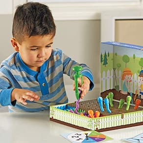 Puxe novas habilidades motoras finas, um verme de cada vez! Com os Wriggleworms! Conjunto de atividades motoras finas da Learning Resources, as crianças podem cultivar um jardim cheio de novas habilidades sem nenhuma bagunça! Com a ajuda do Tri-Grip Tong especialmente projetado do conjunto, as crianças pegam e puxam minhocas do quadro de atividades de espuma macia, construindo força de mão, aderência ao lápis, coordenação e outras habilidades motoras finas essenciais à medida que avançam! Esses vermes constr mais do que apenas habilidades motoras finas – os Wriggleworms! O Fine Motor Activity Set está repleto de diversão de aprendizagem pré-escolar 5 em 1! Com o spinner e os cartões de atividades incluídos, as crianças podem transformar o aprendizado em um jogo à medida que dominam a identificação de cores, a classificação, o pensamento crítico e as primeiras habilidades matemáticas! O melhor de tudo, os Wriggleworms! Fine Motor Activity Set é uma maneira interna fácil de recriar a diversão de cavar na sujeira sem qualquer bagunça associada! Um ótimo ajuste para salas de aula de jardim de infância ou pré-escola!