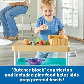 Conjunto de 11 peças Learning Resources New Sprouts Prep 'n' Store Kitchen Island — Pretend Play Kitchen Island para crianças maiores de 2 anos, Play Kitchen Food para crianças pequenas, mercearia e crianças — Prepare festas fingidas: as crianças podem preparar todos os tipos de banquetes imaginários com este carrinho de cozinha de 3 andares com balcão estilo “açougueiro”! - Solução de armazenamento rolante: com rodas giratórias, uma alça infantil e duas prateleiras de armazenamento embutidas, este carrinho de cozinha infantil está pronto para armazenar todos os tipos de comida para brincar na cozinha infantil! - Comida para brincar incluída: este conjunto de acessórios de cozinha lúdica inclui 6 peças de comida para brincar durável e realista, além de uma peneira e uma pinça, para que as crianças possam começar a planejar seu próximo banquete imediatamente! - Ótimo para cozinhas lúdicas: feito de plástico durável e com comida de brincar realista, este carrinho está pronto para brincar, coleções de cozinha e brincadeiras de fingir de mercearia em casa ou na sala de aula! - Dê o presente de aprender: se você está comprando para feriados, aniversários ou apenas porque, os brinquedos educativos premiados da Learning Resources ajudam você a descobrir uma nova diversão de aprendizagem sempre que você dá um presente! - Os presentes de Natal mais inteligentes para crianças: de brinquedos para bebês e brinquedos infantis a brinquedos de Natal e outros ótimos estojos para crianças, os brinquedos da Learning Resources adicionam um toque de diversão educacional aos brinquedos natalinos para meninas e meninos.