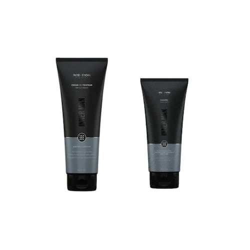 Red iron kit inner man shampoo cabelo e barba + creme de pentear Shampoo - cabelo e barba Equilíbrio refrescante. Limpa o cabelo e a barba removendo as impurezas e agentes externos que prejudicam os fios, com suavidade e prevenindo o envelhecimento precoce dos fios, restaura a fibra capilar. Ph 5,5 Creme de pentear Creme modelador que contém em sua fórmula aloe vera e proteína hidrolisada da queratina, que ajudam a proteger contra danos e Quebras, deixando os fios visivelmente saudáveis, ultra macios e mais resistentes.