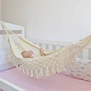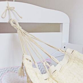 Redinha para bebês confeccionada artesanalmente em tecido 100% algodão com materiais selecionados de excelente qualidade, que permite conforto e muita qualidade simulando o ambiente uterino em uma posição muito confortável possibilitando um balanço suave para relaxar seu bebê. Acompanha 1 par de cordinhas para que a rede possa ser amarrada em todos os tipos de berços ou camas montessoriana.
