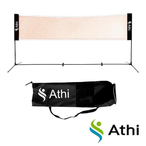 Rede Portátil para a prática de Badminton e para iniciação do Beach Tenis, contendo 01 rede, 2 suportes com sistema de fácil montagem e desmontagem, com cordas elásticas internas, com conector de quatro vias estáveis e duraveis. Bolsa com alça para armazenamento e transporte.