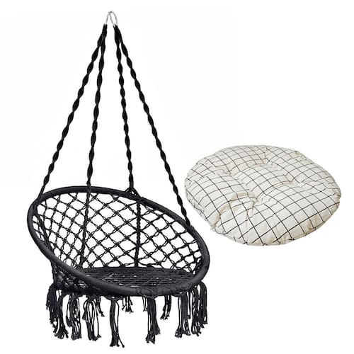 E para aqueles que não querem furar teto ou pregar um gancho, a rede cadeira proporciona a vantagem de prendê-la com cordas. Deixe o ambiente a cada momento do dia mais vivo e moderno; as sombras que se formam nas paredes com a cadeira suspensa, do amanhecer ao entardecer, são fantásticas.