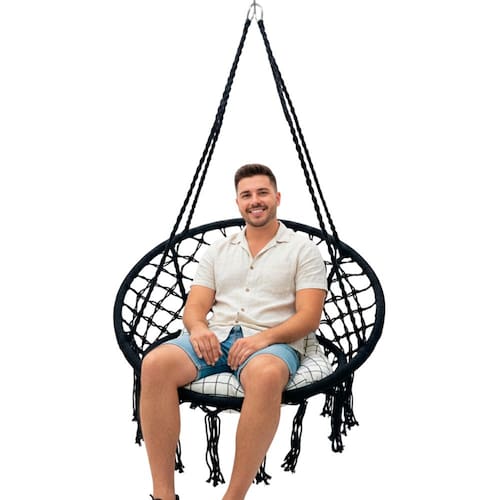 E para aqueles que não querem furar teto ou pregar um gancho, a rede cadeira proporciona a vantagem de prendê-la com cordas. Deixe o ambiente a cada momento do dia mais vivo e moderno; as sombras que se formam nas paredes com a cadeira suspensa, do amanhecer ao entardecer, são fantásticas.