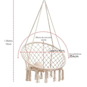 Com seu formato e cores atraentes, além de deixar os cantos da casa mais visíveis, contribui para nos revigorar para o dia a dia. Rede cadeira de balanço ótima para decoração em varandas, sítios, jardins ou qualquer ambiente.