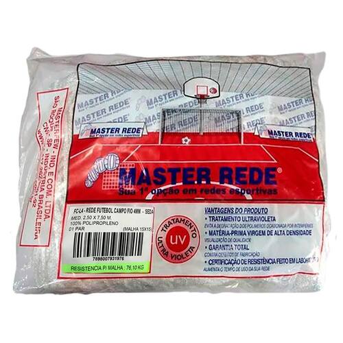 Rede Campo Tradicional Master Rede Fio 4mm Seda Rede Campo Tradicional Master Rede Fio 4mm Seda Rede para Futebol de Campo Master Rede Fio 4mm em Seda tradicional, ou popularmente conhecida como véu de noiva. Indicada para a prática do Futebol em todas suas categorias, desde infantil, adulto, amador ou profissional. A Rede Master Rede é fabricada com malhas quadradas sem nó, proporcionando durabilidade e melhor acabamento, possui Tratamento Ultravioleta que evita a degradação dos polímeros ocasionada por condições climáticas.