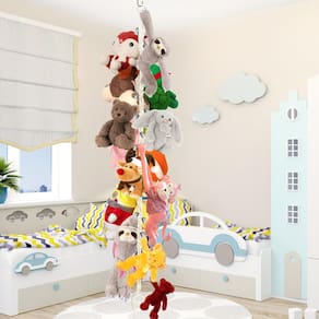Características: Economia de espaço O porta-redes para bonecas de pelúcia de canto pode aproveitar ao máximo a posição do canto, manter a casa arrumada e liberar espaço valioso para seus filhos brincarem. É uma alternativa aos pufes, caixas de armazenamento, cestos e caixas sanitárias . Presente perfeito Ótima ideia de presente para chás de filha e bebê. Uma maneira divertida de exibir bichos de pelúcia, bichos de pelúcia para animais de estimação, bonecas, bolas, cobertores e travesseiros. Ótimo para armazenamento e organização de berçários e quartos infantis . Ferramenta de ensino O organizador de correntes de rede para bonecas pode ser aplicado como uma boa ferramenta de ensino, que fornece um local para limpar a boneca. Seus filhos começarão a colecionar a boneca sozinhos e desenvolverão o hábito de se organizarem. Crie uma atmosfera acolhedora A corrente de armazenamento pode ser pendurada horizontalmente, o que permite pendurar fotos de família e imagens de arte nela, criando uma atmosfera acolhedora em sua casa. -?Robusta e durável?Esta corrente para pendurar bichos de pelúcia é feita de corda grossa de algodão e argola de madeira, que é mais forte e durável. E os clipes são feitos de aço inoxidável, com forte capacidade de carga e durabilidade, podendo segurar sua boneca de pelúcia por muito tempo. -?Opção de suspensão dupla?O armazenamento de bichos de pelúcia suspenso nos cantos pode ser pendurado na horizontal ou na vertical, o que pode satisfazer suas diferentes necessidades de suspensão. O design da rede de pelúcia faz com que a boneca tenha boa visibilidade, adequada para exibir bichos de pelúcia. A rede boho para bichos de pelúcia também é uma boa decoração de quarto, adicione um pouco de diversão ao quarto, sala de jogos ou berçário do seu filho. -?Pacote incluído?Você receberá uma rede de algodão de pelúcia de 78 polegadas com 20 clipes de metal incluídos, quantidade suficiente para atender às suas demandas de suspensão. O clipe é removível, você pode ajustar a distância entre os clipes com base no tamanho da boneca para obter um melhor efeito de exibição. -?Amplamente utilizada?Nossa rede de armazenamento de algodão pode ser aplicada para pendurar bonecas de pelúcia, cachecóis, cobertores, gravatas, meias, chapéus, luvas, cartões de Natal, exposições de arte, etc. Aproveitando ao máximo todos os cantos, ajudando você a economizar espaço de armazenamento. -?Canto de rede para bichos de pelúcia?A rede suspensa para canto de bichos de pelúcia pode economizar muito espaço de armazenamento. Libere espaço no chão e na cama no quarto das crianças, mantenha seu quarto arrumado e espaçoso. E as crianças desenvolverão bons hábitos para arrumar a boneca.