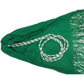 A Rede de Descanso Araty Relax é extremamente confortável, arejada e leve. Ideal para camping, pescarias, escotismo, trilhas e treinamentos de sobrevivência na selva, essa rede de descanso pode ser facilmente instalada, pois possui terminais cordas para amarração em suas extremidades. Feita 100% de polipropileno, a rede pode ser lavada quando for necessário e a secagem é super rápida. Não possui costuras, emendas ou nós. Suas malhas são abertas, cerca de 18mm de distância entre uma e outra, por isso é bastante ventilada. A rede de descanso tem um reforço com malhas fechadas nas duas extremidades, tornando a um produto seguro e resistente, suportando 150kg aproximadamente. Pode ser transportada tranquilamente em bagagens e mochilas, pois ocupa pouco espaço e não chega a pesar nem 1kg. Cor: Verde Dimensões: 2,90m x 2,20m Comprimento entre terminais x Largura . Possui 2 terminais corda sem alma para amarração com 1,50m de cada lado. Peso: 990g Suporta até 150 kg aproximadamente. Tecido: 210/18-18-144 Possui Proteção Anti-UV Com bolsa transparente. Feita de polipropileno. Marca: Araty Relax Ean: 7891289034700