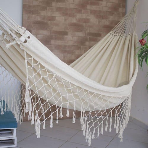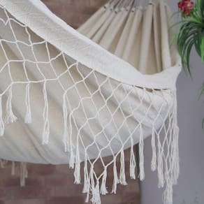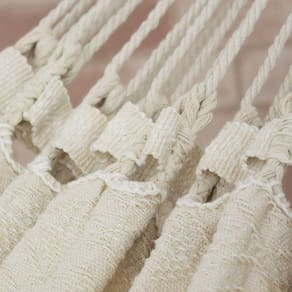 Campeã de Vendas devido ao seu acabamento manual primoroso, criamos uma versão mais enxuta e básica da rede de dormir casal Tambaba crua sem perder o toque artesanal de nossas redes. Nesse modelo, o tecido continua em alto relevo, característico do modelo Tambaba da linha Luxo, porém o seu babado lateral é mais sutil, feto com varandas em losangos de apenas um nó. Essa é uma rede de descanso que pode ser usado em todo e qualquer ambiente, proporcionando conforto em seu descanso devido o seu tecido macio e confortável, ou até mesmo para decoração do seu lar. Tenha sempre um bom descanso e bons sonhos em nossas Redes de Dormir.