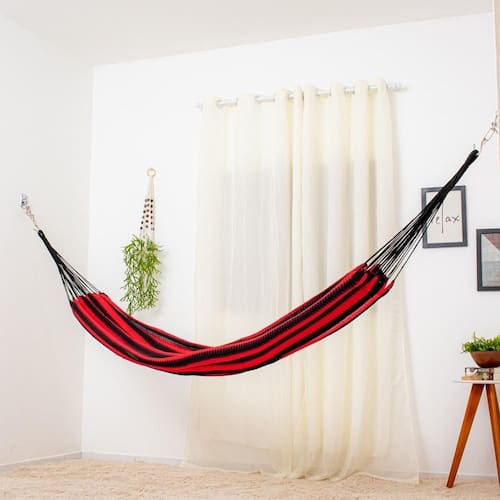 Rede de Dormir Amazonas Nylon Listrada Vermelho com Preto é o mais novo modelo de rede de descanso. Produzida totalmente em Polipropileno, mais conhecido como nylon.