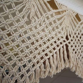 Lançamento especial de uma rede de descanso na Cor Bege (Algodão Cru) , seu tecido altamente resistente tem um auto relevo que lembra o bucho de um boi, no nordeste essa rede tem o apelido de BUCHO DE BOI seu babado ( varanda) é feito pelo mesmo fio em que a rede foi produzida, com um acabamento artesanal valorizndo a cultura nordestina em produzir redes feita a mão.